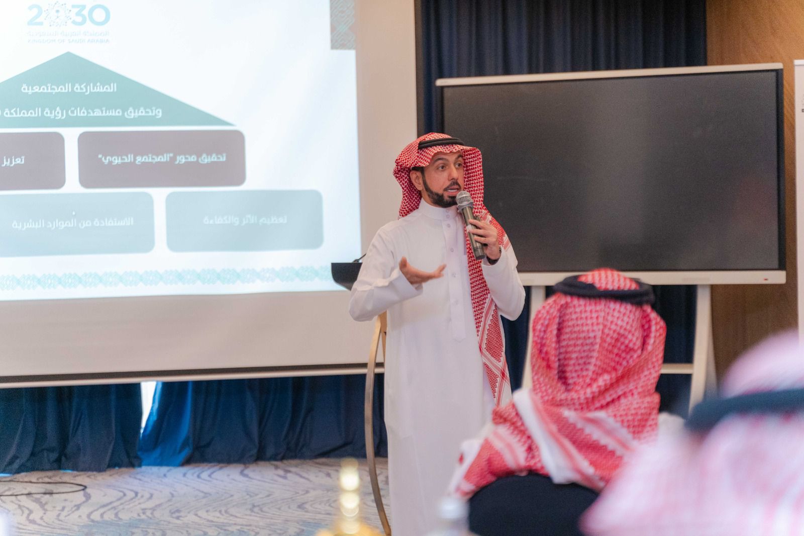 تضمّن البرنامج جلسات تخصصية تناولت موضوعات الحوكمة وفرص الشراكات والتحديات الميدانية، فيما ركّزت جلسة الهاجري على دور المشاركة المجتمعية في تطوير القدرات المؤسسية، مؤكدًا أن تكامل الجهود بين المجلس والمؤسسات الأهلية يمثل ركيزة لتحقيق التنمية المستدامة.
